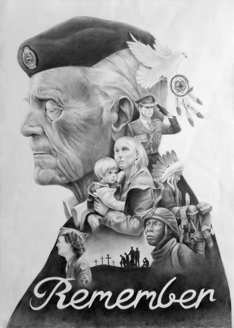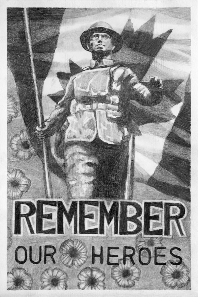 Solomon Velji of Renert School in Calgary won first place in the Legion National Foundation’s 2025 National Youth Remembrance Contests’ primary black and white poster category with this piece.