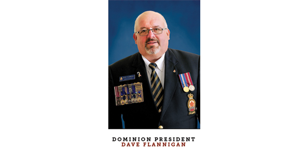 DOMINION PRESIDENT Dave Flannigan, 60, has served the Legion for 41 years and is a life member of Labrador City, N.L., Branch. He was district commander in 2001 and has held every branch office, including president of Newfoundland and Labrador Command in 2007. That year, he joined Dominion Executive Council and was a member of finance/budget and focus on the future committees and was chairman of sports and poppy and remembrance committees. He has also served as co-chairman of membership and outreach. Currently he is chairman of veterans, services and seniors, Royal Commonwealth Ex-Services League (RCEL) and dominion convention and vice-chairman of pay, finance/budget, investment and staff pension and a member of veterans consultation committee. In June he was appointed vice-chairman of the Canvet Publications Ltd. Board of Directors.