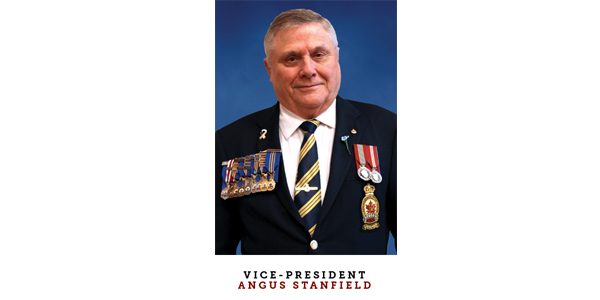 VICE-PRESIDENT Angus Stanfield, 70, has 24 years of Legion service. He is a life member of the Sooke, B.C., Branch and was first elected to the branch executive in 1995 and became president in 2001. Twelve years later he was elected president of British Columbia/Yukon Command and began serving at the national level on the Dominion Executive Council. He was vice-chairman of poppy and remembrance and a member of the sports committee. He now serves as chairman of sports, as a member of finance/budget committees and zone representative for the Eastern U.S.