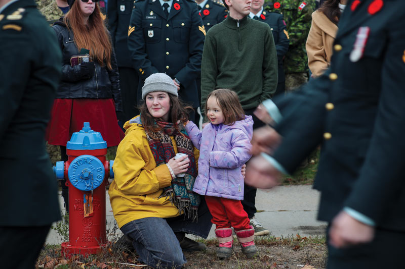“Last year,” he remarked, “my eldest came along [for the Remembrance Day service] while Mom was at home with our youngest as it was too cold.” Now that both have grown a little, declared the 21-year CAF member and relative Oromocto newcomer, “I’ll try my best to bring them every time.”