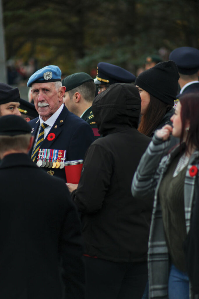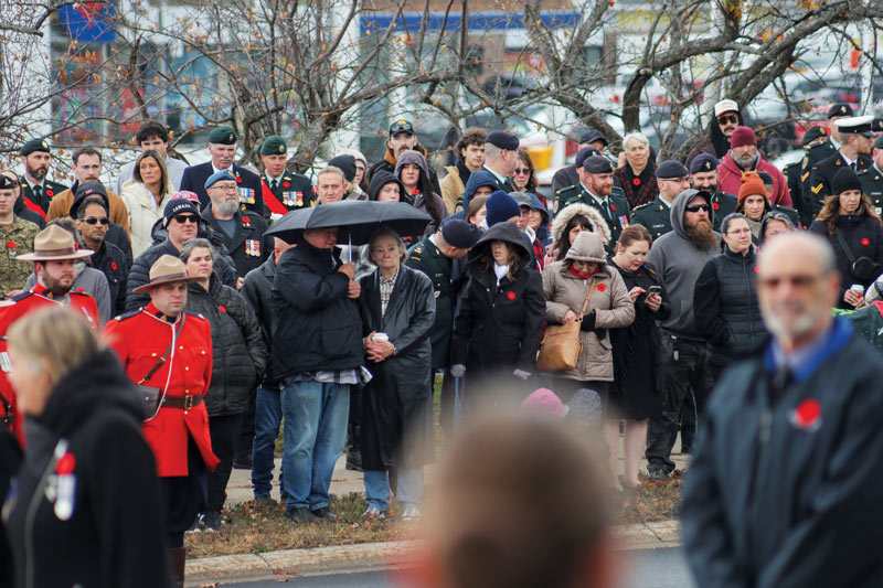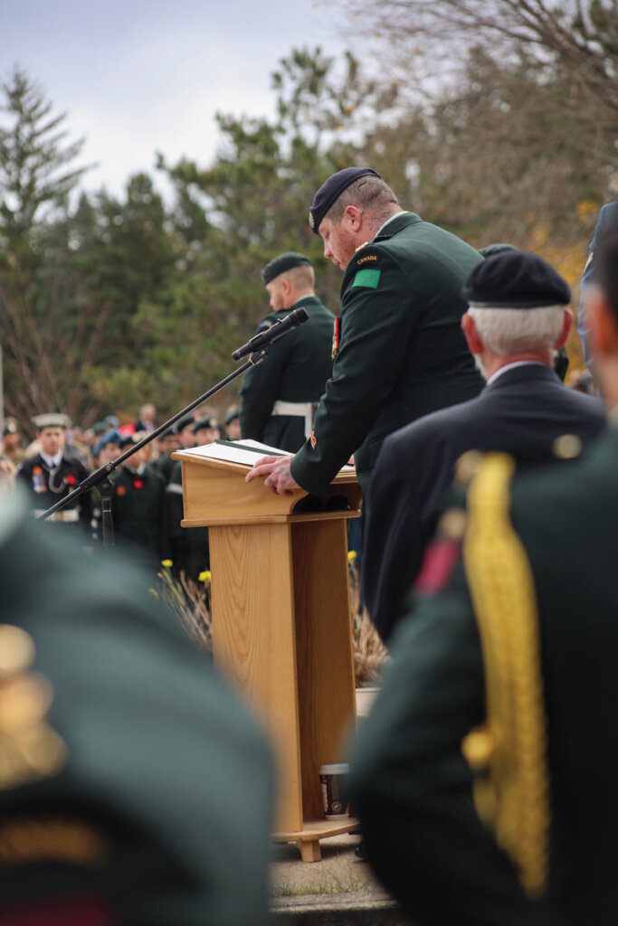 Beneath the last vestiges of autumn, the people gathered. They came like a rolling tide, a sea of uniforms and civvies undeterred by ominous clouds and a biting chill. Clutching coffee cups to warm purpling hands, overcoats fastened tight amid the threat of downpour, the crowd waited for the moment soon at hand. That they would congregate was never in doubt—not in Oromocto, N.B., on Remembrance Day 2025. Not in a town where a sense of community and service, military or otherwise, intersect like its own namesake tributary and that of the Saint John River near its Cenotaph off MacDonald Avenue.