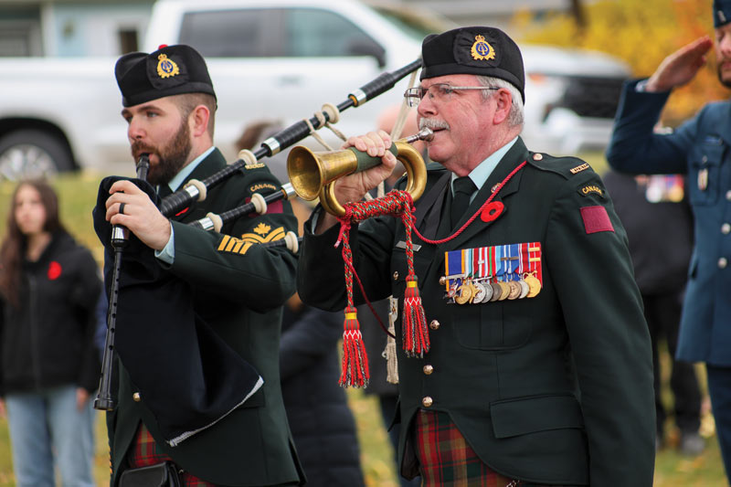 Proulx-Yergeau had a simple yet practically universal reason for doing so. “It’s a mark of respect for sure,” he noted, a sentiment shared by comrades near and far when the bagpipe- and drum-laden procession finally passed en route to the war memorial. “The fallen have given us what we have today,” he offered in parting.