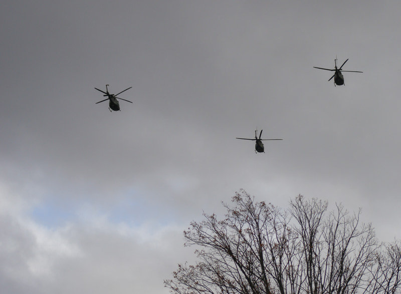The piper’s “Lament” still echoed down the street as, from briefly accommodating clouds, a flypast from 403 Helicopter Operational Training Squadron—based at Gagetown—stirred children to crane necks upward. Most uniformed parents, meanwhile, maintained focus, their eyes fixed on the cenotaph with steady salutes.