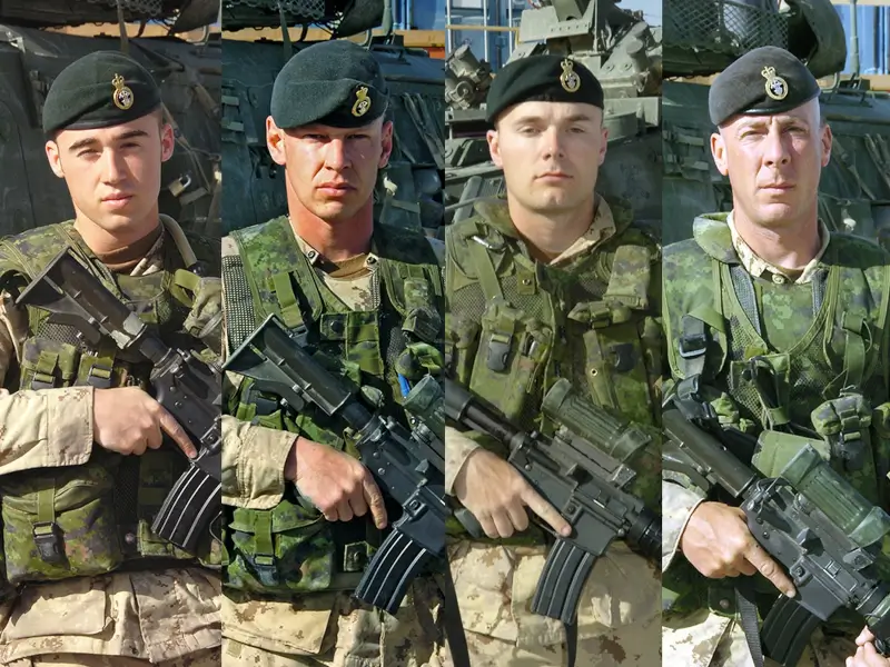 (Left to right) Private Kevin Dallaire, Sergeant Vaughn Ingram, Corporal Bryce Keller and Corporal Chris Reid all died during the Battle of the White School in Afghanistan on Aug. 3, 2006. [DND]