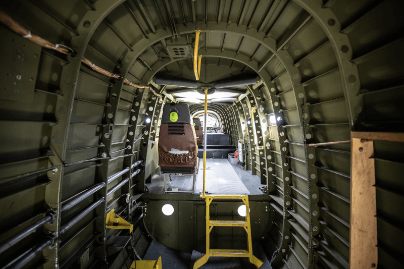 There’s also very little light, very few windows to look out of—aside from the cockpit and turrets—because it was a heavy nighttime bomber, so you wanted to reduce the amount of light that could be seen [from] outside of the aircraft.