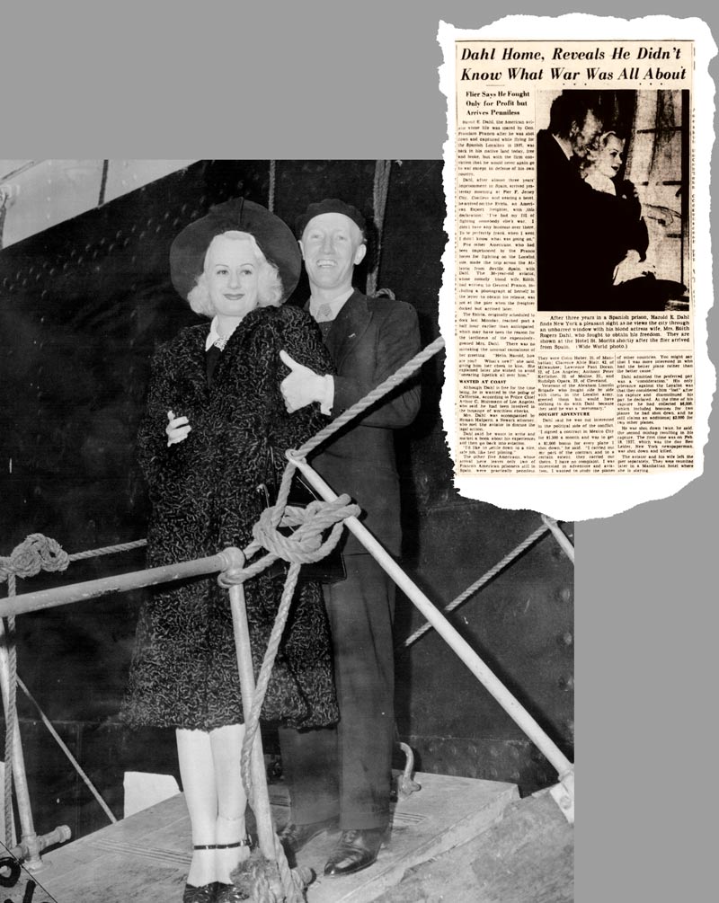 After nearly three years in a Spanish prison, Dahl returned to the U.S. in 1940 and kept up the marriage hoax with Rogers for a brief period. Now celebrities, their improbable story was big news in U.S. newspapers. It inspired the Hollywood movie Arise, My Love, which won an Oscar for Best Writing, Original Story and earned three other nominations in 1941.
