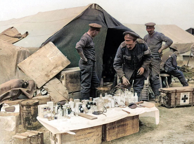A medical dispensary at a British camp on the Western Front during the Great War.[Chronicle/Alamy/2RGDYDC]