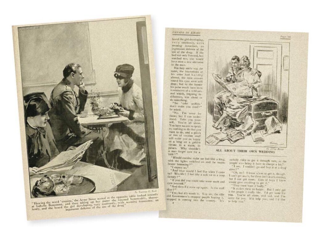 Wartime magazine Canada in Khaki published “The Saving of Tom McKay,” a tale about a wounded Canadian soldier who ultimately averts the perils of cocaine.[Canada in Khaki]