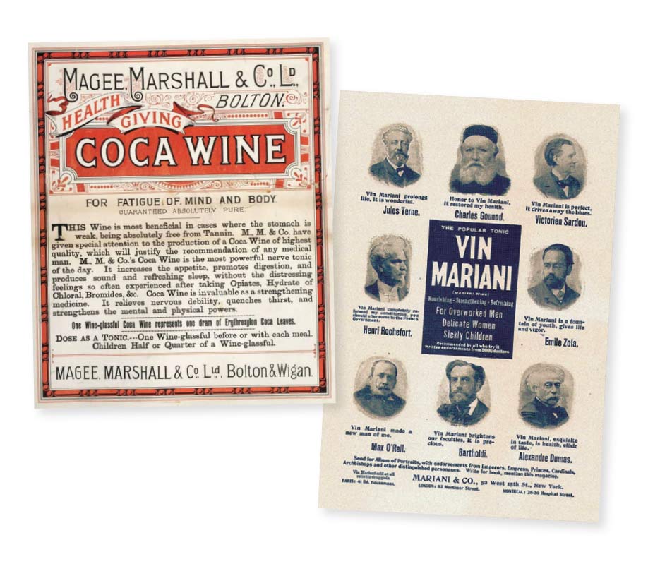 The latter was the “best and safest tonic pick-me-up for exhaustion, want of energy and general debility” read an ad published in 1900 in the Times, which cited celebrity users such as Pope Leo XIII, U.S. President William McKinley and French writer Émile Zola. In Canada, Eaton’s 1899-1900 fall and winter catalogue offered “Mariani coca wine” for a dollar a bottle and generic “coca wine” for half that price.