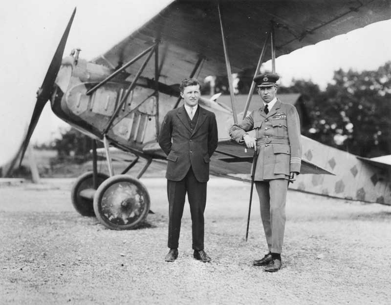Canadian aces William Barker and Billy Bishop pose by a captured Fokker D.VII [Pringle & Booth/LAC/3364746]