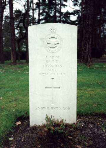 The airframe and its occupant had been very badly burned, and despite extensive searching, nothing was found to identify either the plane or its pilot. Thus, the British Ministry of Defence declared the man unknown, and he was buried on July 15, 1977, at Brookwood Military Cemetery in Surrey.