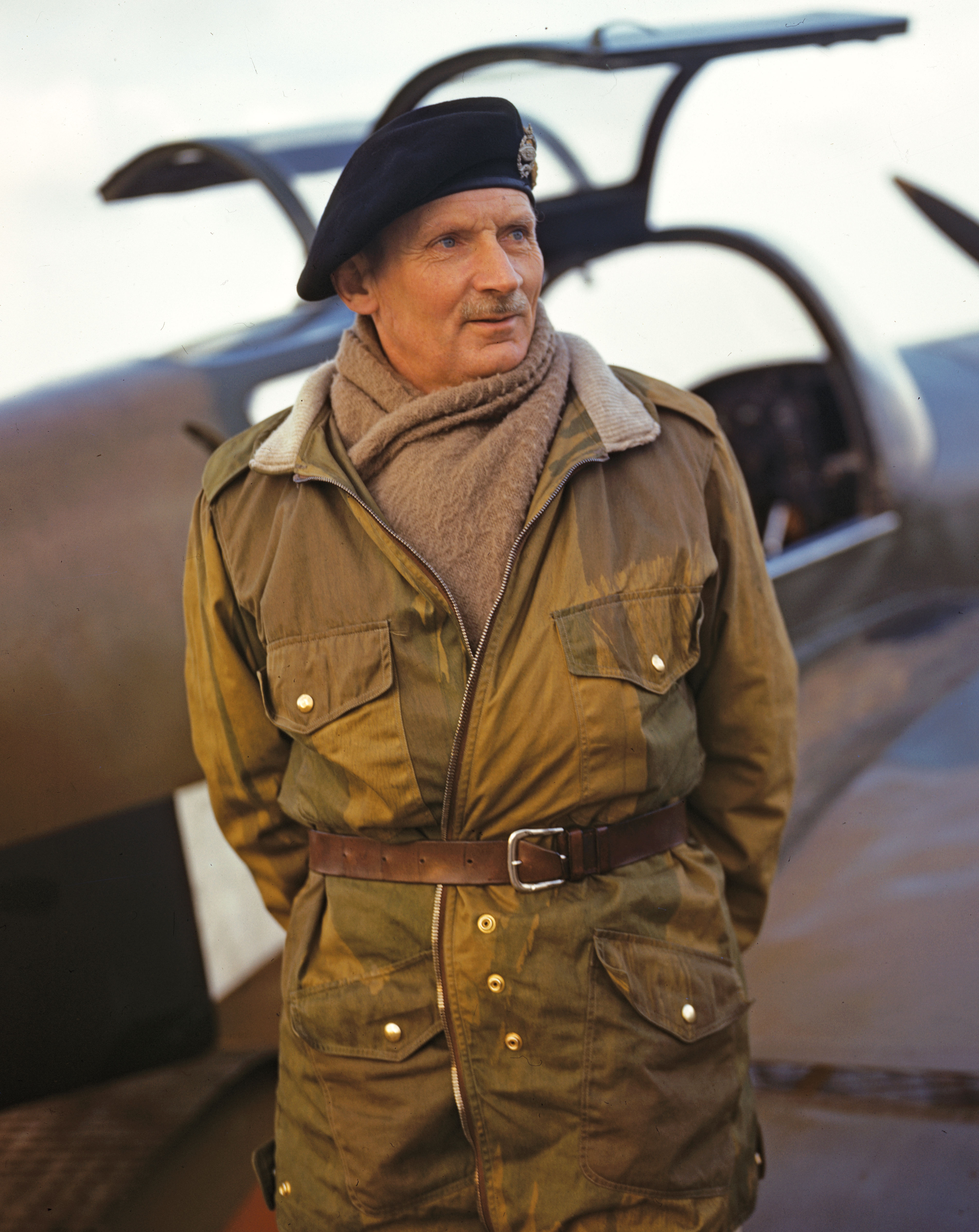 British General Bernard Montgomery takes credit for the victory at the Battle of the Bulge during a press conference in Zonhoven, Belgium.