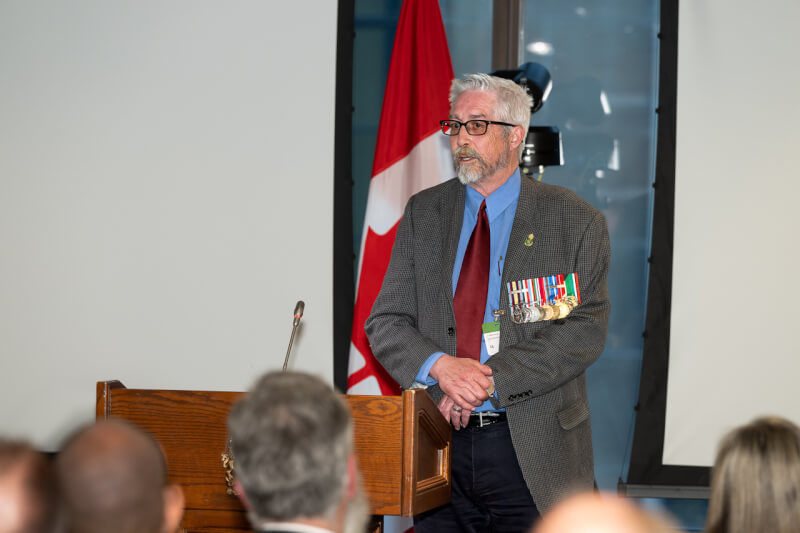 Mike McGlennon speaks to MPs in May 2023. He has been campaigning for years to have Canada officially recognize the “wartime service” of veterans of the Persian Gulf War. [courtesy of Mike McGlennon]