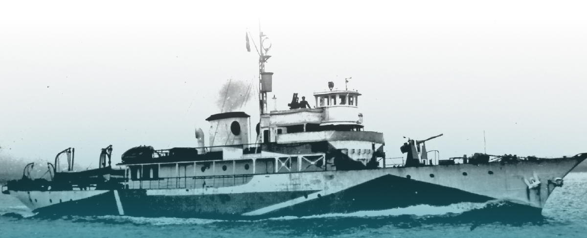 ARMED YACHT: HMCS Vison (above) was a former civilian motor yacht. The author (top) as an ordinary seaman in 1943. [Fraser McKee]