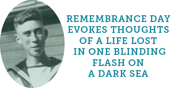 On Remembrance Day or, for a naval veteran, Battle of the Atlantic Sunday in May, I am called upon to recall those fellow Canadians who gave their lives for us. At naval events the ships that were lost are frequently read out, but I have this vaguely detached feeling. I was never in a ship that was torpedoed, or even at risk, as far as I know. Nor did I serve in a ship and get to know her and her idiosyncrasies—one I could call “my ship”—that was subsequently lost. Assuredly, I appreciate the price paid, in lives, in ships, in aircraft, during the struggles. After all, we were in the same service, faced potentially the same dangers. But to some extent it’s a bit distant. It doesn’t affect me on a personal level, in my heart or gut. And this is probably true enough for many Canadians unless a family member was lost.