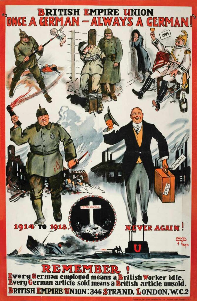 What may have been an ember of doubt was fanned to flames by anti-German sentiment. Early in the war, Britain used propaganda to fuel recruitment and civil support for the fighting both at home and in its dominions—Australia, New Zealand, South Africa, Newfoundland and Canada.