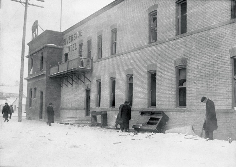 Calgary’s Riverside Hotel in the aftermath of the February 1916 anti-German riot. [University of Calgary/CU1105865]