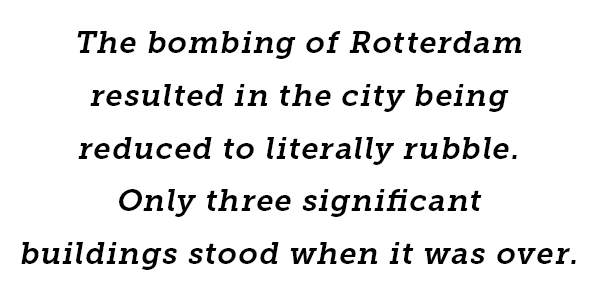 The bombing of Rotterdam resulted in the city being reduced to literally rubble. Only three significant buildings stood when it was over. One of these was the church of St. Laurenskerk. The people of Rotterdam did without other reconstruction in order to rebuild their cathedral. They felt it was