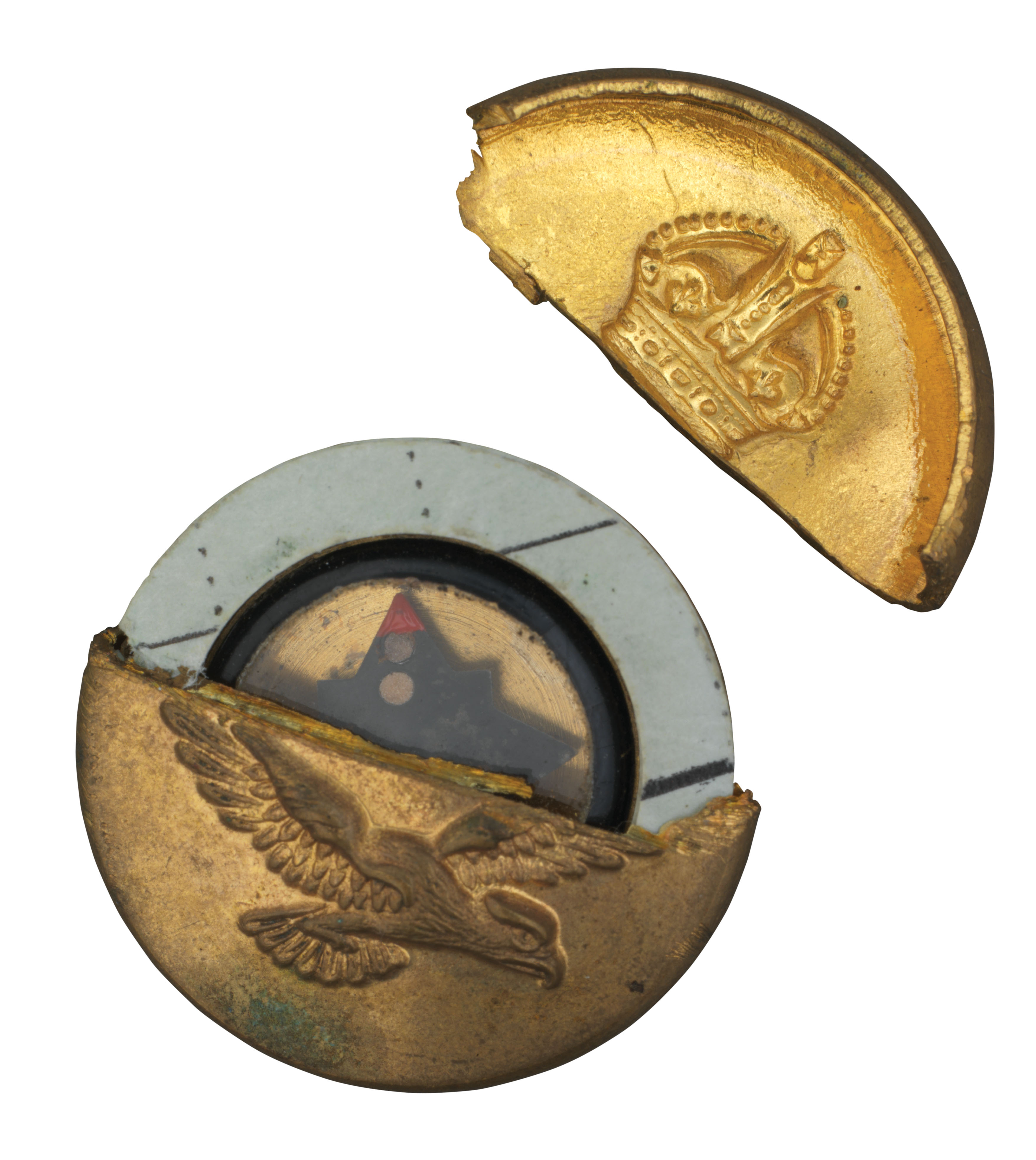 Compass in a button: Miniature compasses were hidden inside uniform buttons. To foil discovery, the buttons unscrewed backwards. [Imperial War Museum]