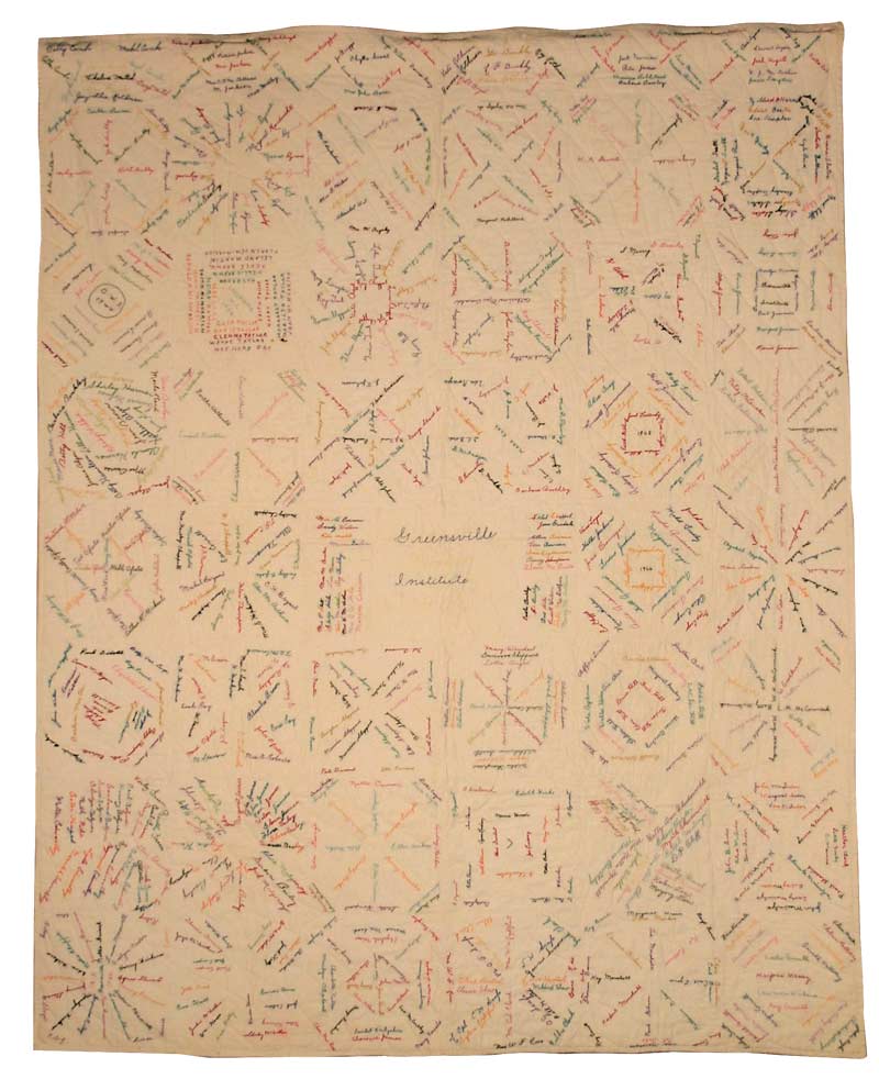 Ontario’s Greensville Women’s Institute created this signature quilt as a fundraiser in 1944. Individuals paid 50 cents each to have their names embroidered on it.[Dundas Museum & Archives/1973.001]