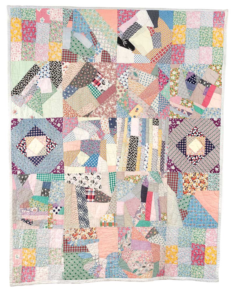 Offcuts from garment manufacturers, remnants of worn-out clothes and leftover “orphan blocks” from completed quilts were incorporated into new patterns.