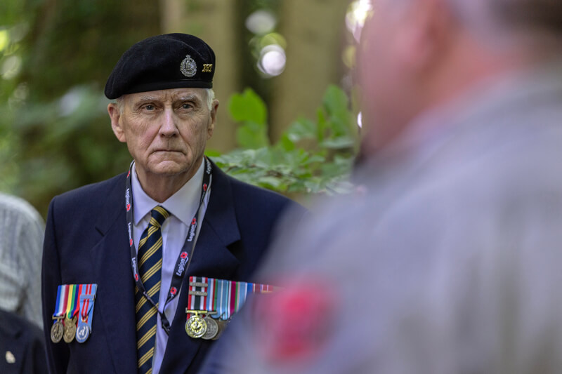David Scandrett, a former armoured trooper and commanding officer of the 3rd Canadian Ranger Patrol Group, listens intently to an account of the executions of three Canadian soldiers at the spot where they died in a Normandy forest. At least 156 Canadian soldiers were executed by Panzer SS troops after D-Day. [Stephen J. Thorne/LM]