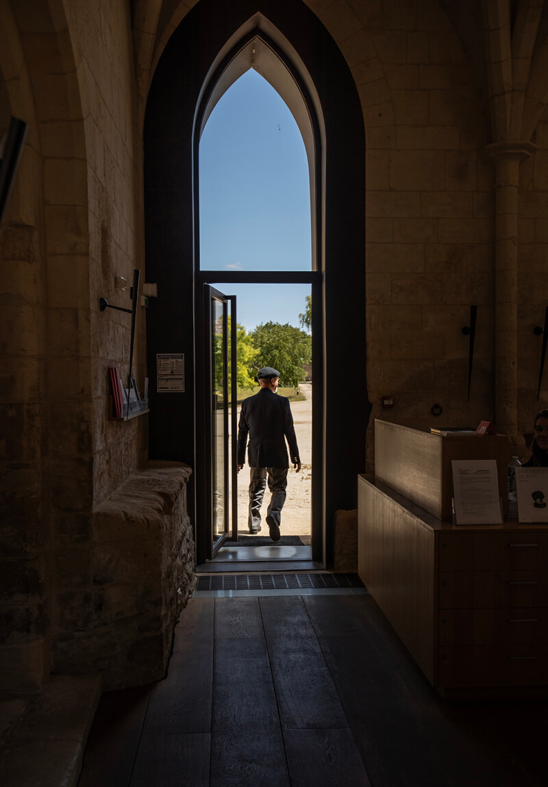 Henry d’Eon, who served 28 years as a combat engineer in the Canadian Forces, sets foot in the courtyard at Abbaye d’Ardenne where 16 Canadian soldiers were executed by Kurt Meyer’s 12th SS Panzer troops. [Stephen J. Thorne]