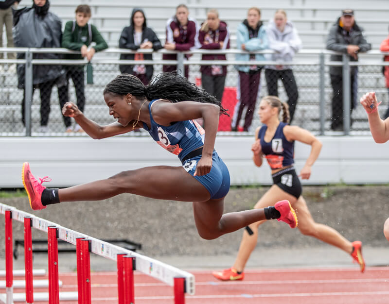 Competing in her last Legion Nationals, Jurnee Scott pulled off two silvers, including in the U-18 100m hurdles where she was just .002s back of Madison Gravelle’s gold medal-winning 13.643s. Jurnee’s twin sister Jordynn missed the competition with an injury. The pair are considering their future, with their collective eye south of the border. [Stephen J. Thorne/LM]