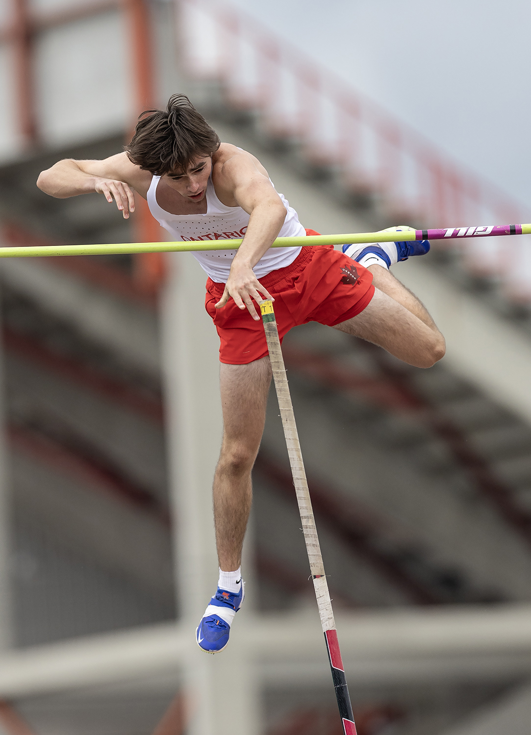 Ben Leveck of Ontario took silver in the U-18 men’s pole vault with a tight 4.60m effort. [Stephen J. Thorne/LM}