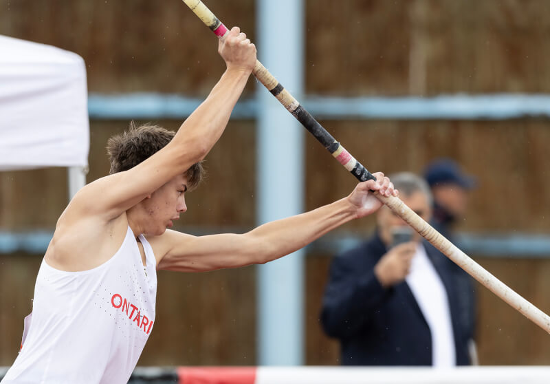 Ben Leveck of Ontario took silver in the U-18 men’s pole vault with a tight 4.60m effort. [Stephen J. Thorne/LM}