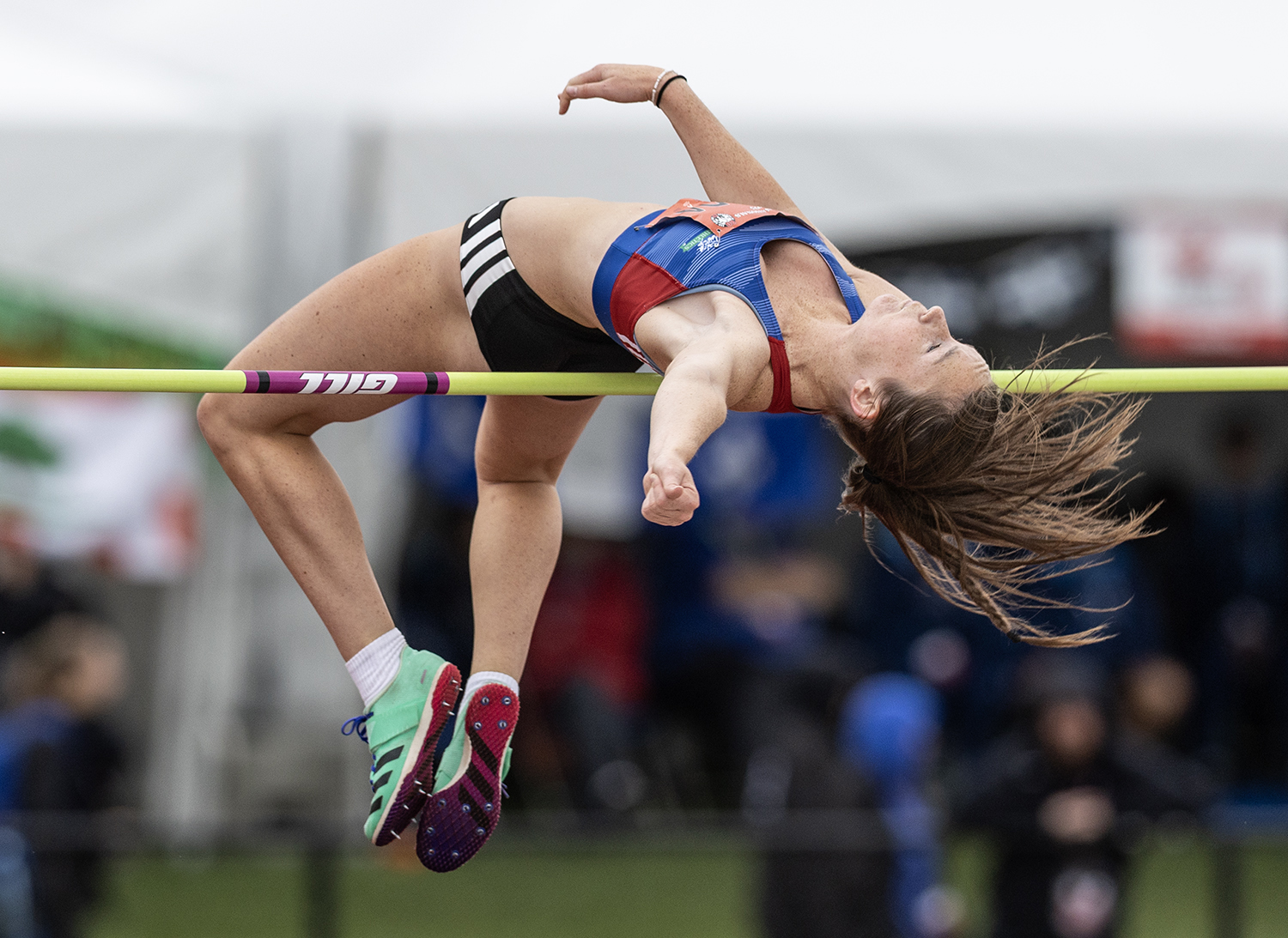 Lily Stroda of of B.C./Yukon swept all four events, including the high jump, on the first day of U-18 women’s heptathlon. She took five of seven overall to smash a 10-year-old Canadian record with 5,573 points and won the LeRoy Washburn Award as the championships’ top female Legion athlete. [Stephen J. Thorne/LM]