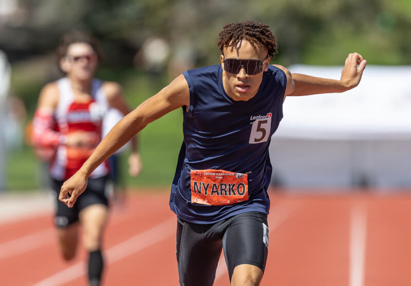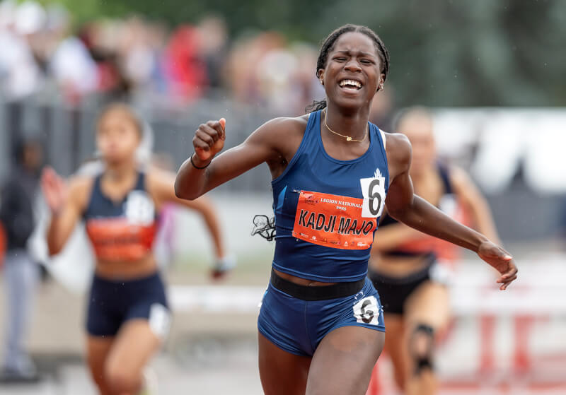 Competing in her last Legion Nationals, Jurnee Scott pulled off two silvers, including in the U-18 100m hurdles where she was just .002s back of Madison Gravelle’s gold medal-winning 13.643s. Jurnee’s twin sister Jordynn missed the competition with an injury. The pair are considering their future, with their collective eye south of the border. [Stephen J. Thorne/LM]