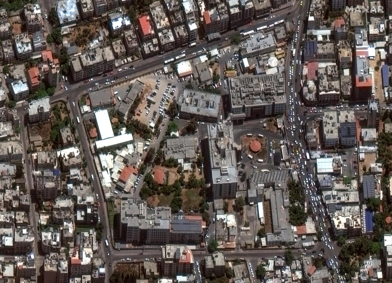 A satellite image shows the Gaza Strip’s biggest and most advanced medical complex, Al-Shifa, after a two-week siege by Israeli commandos in March-April 2024.